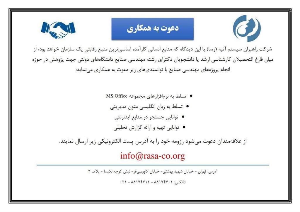 آگهی دعوت به همکاری - دانشکده مهندسی صنایع