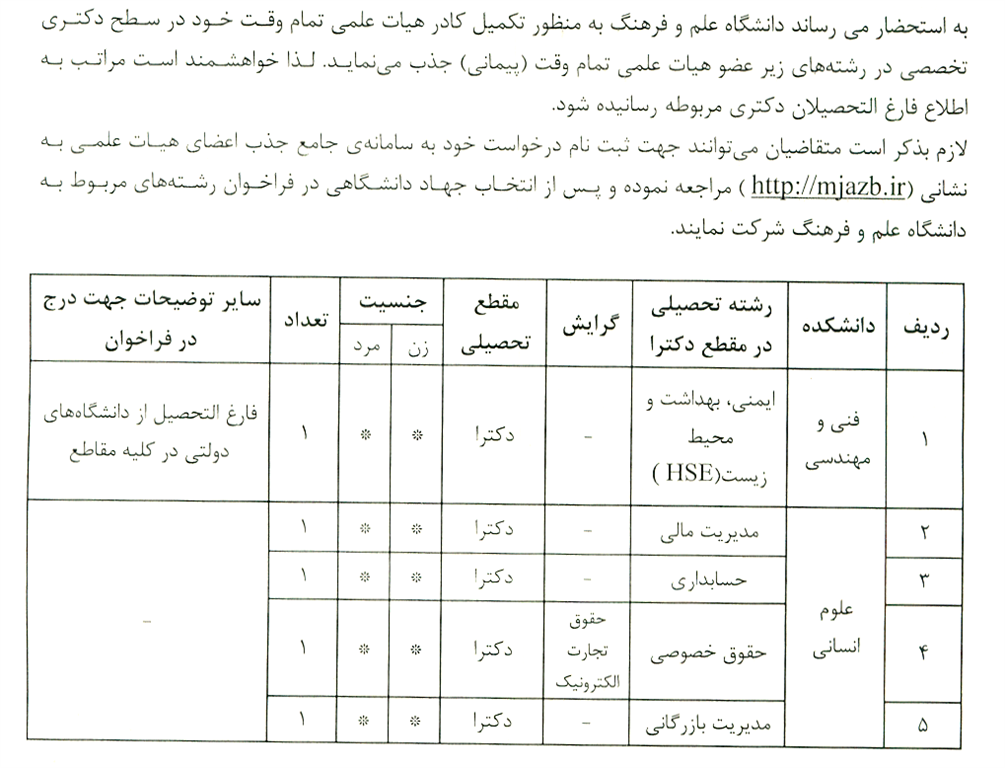 استخدام فارغ التحصیلان دکتری برای هیات علمی دانشگاه علم و فرهنگ