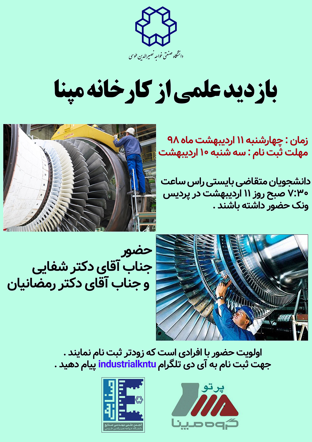 اطلاعيه بازديد از كارخانه مپنا - دانشکده مهندسی صنایع