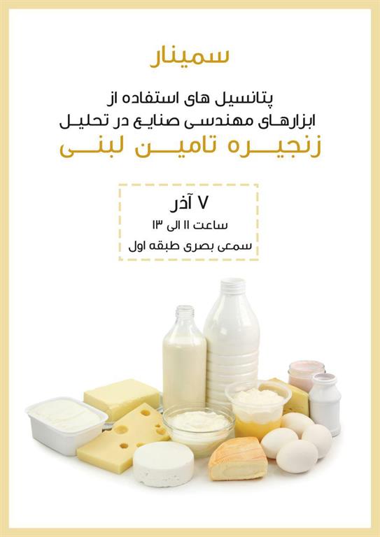 اطلاعيه برگزاري سمينار پژوهشي با عنوان پتانسيل هاي استفاده از ابزارهاي مهندسي صنايع در تحليل زنجيره تامني لبني