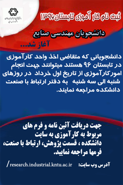 اطلاعيه شروع كارآموزي تابستان 96 - دانشکده مهندسی صنایع