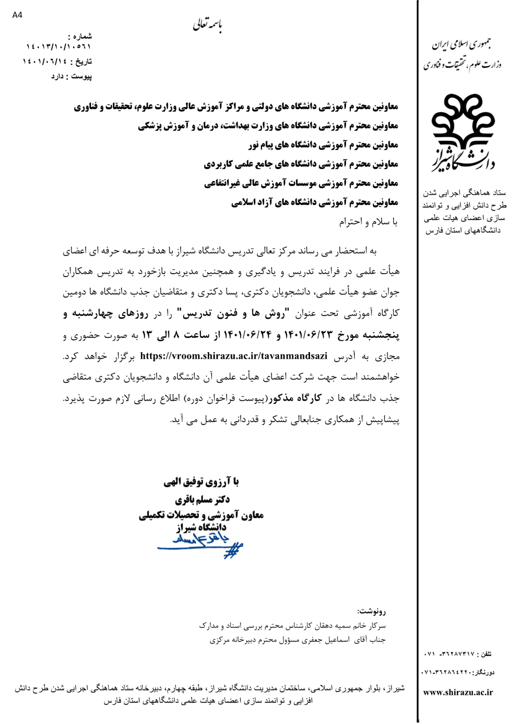 اطلاع رسانی کارگاه روش ها و فنون تدریس به سطح کشور