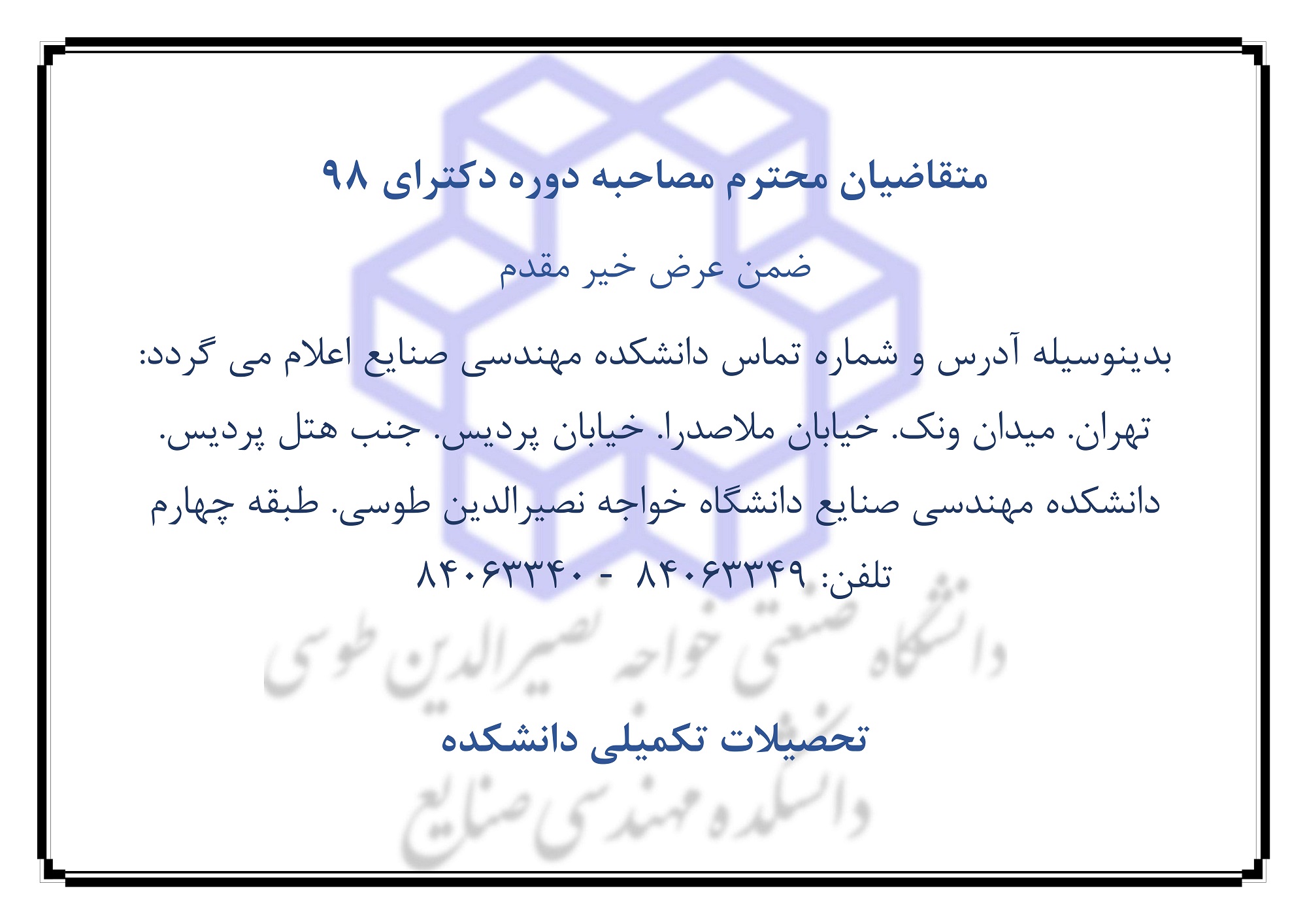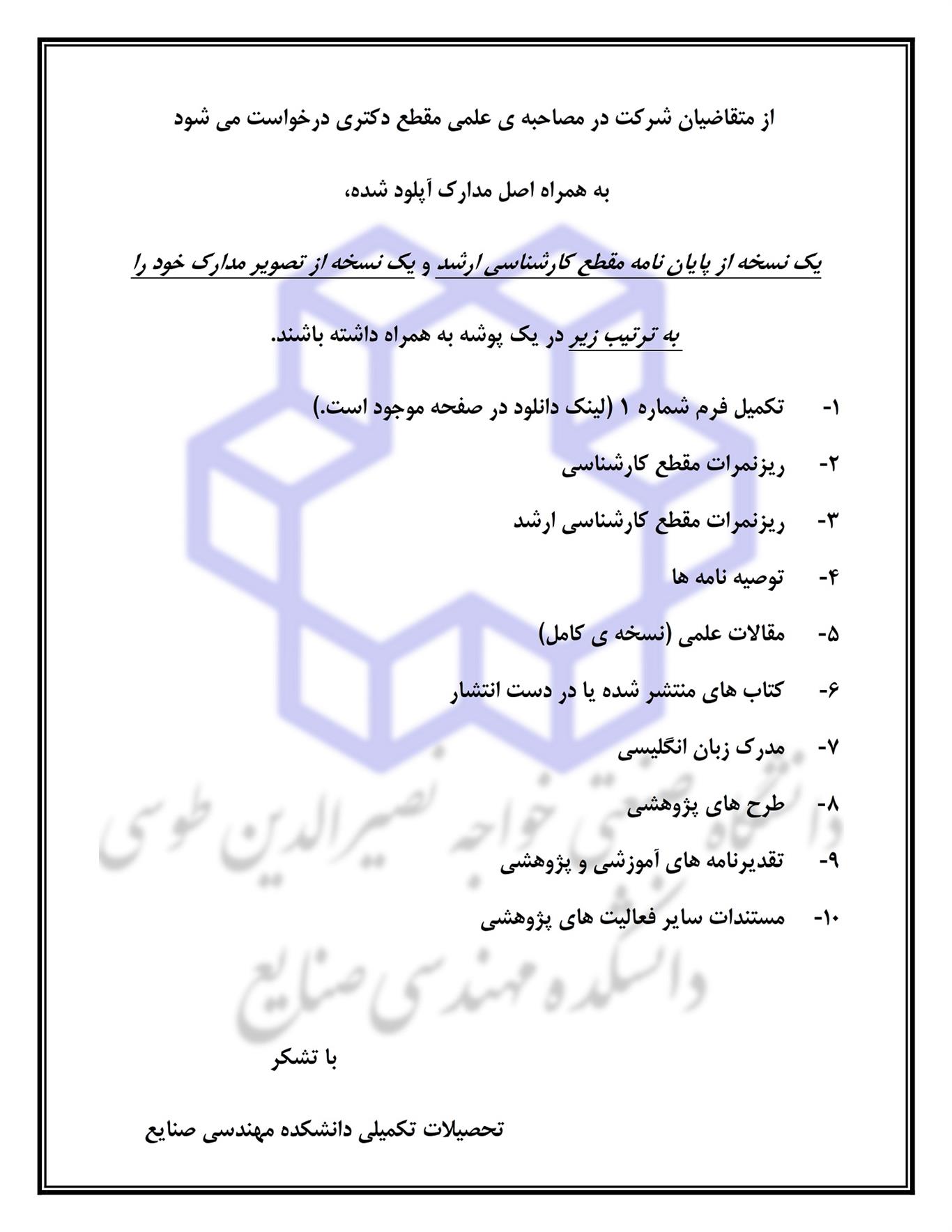 اطلاعيه شماره 2- ب - متقاضيان آزمون دكتري نيمه متمركز مهندسي صنايع