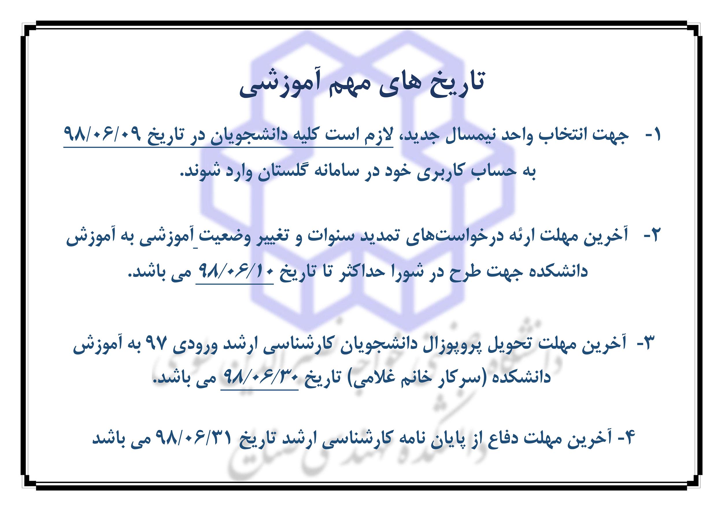 تاريخ هاي مهم آموزشي - دانشکده مهندسی صنایع