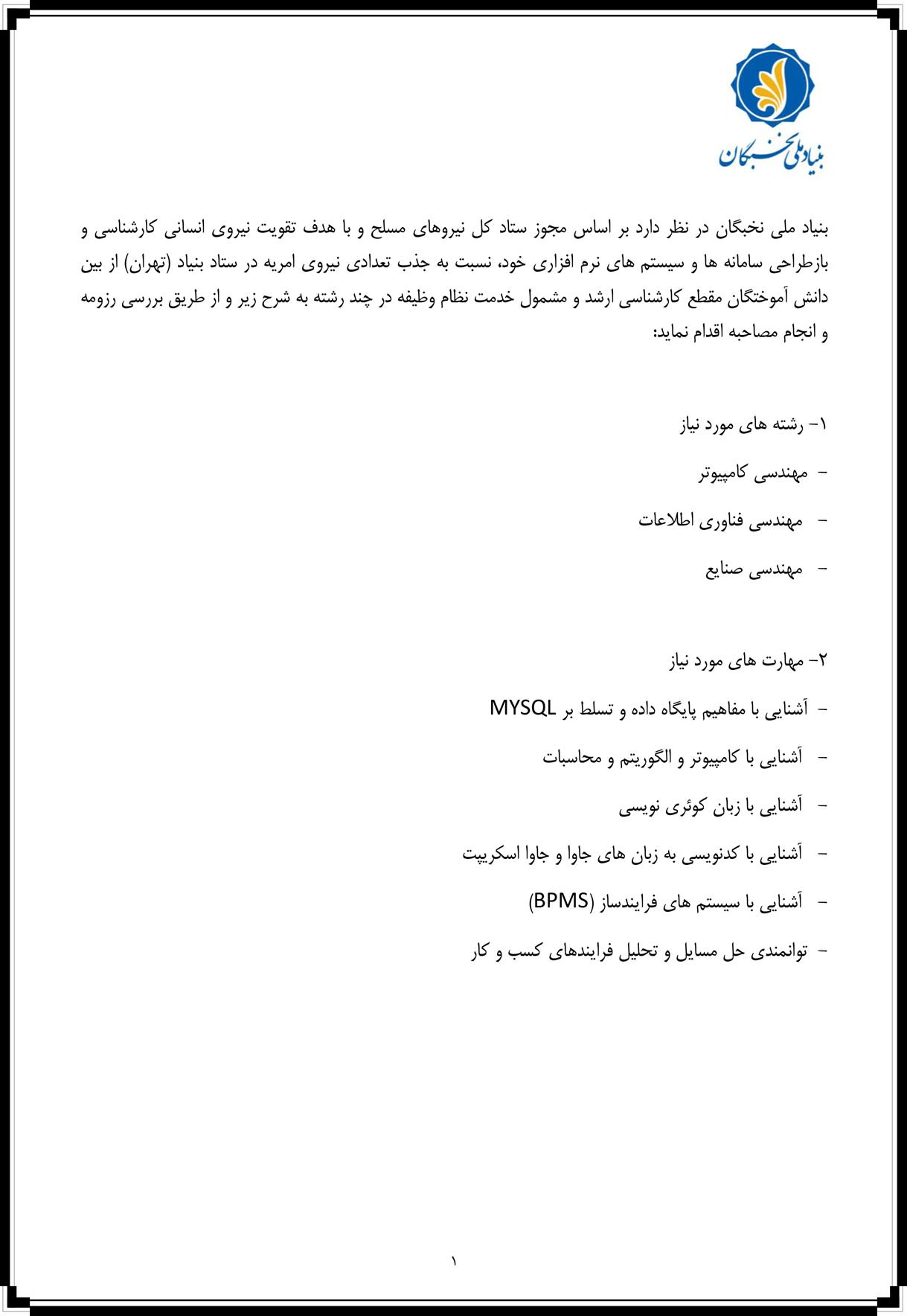 فراخوان جذب نيروي امريه سربازي - دانشکده مهندسی صنایع