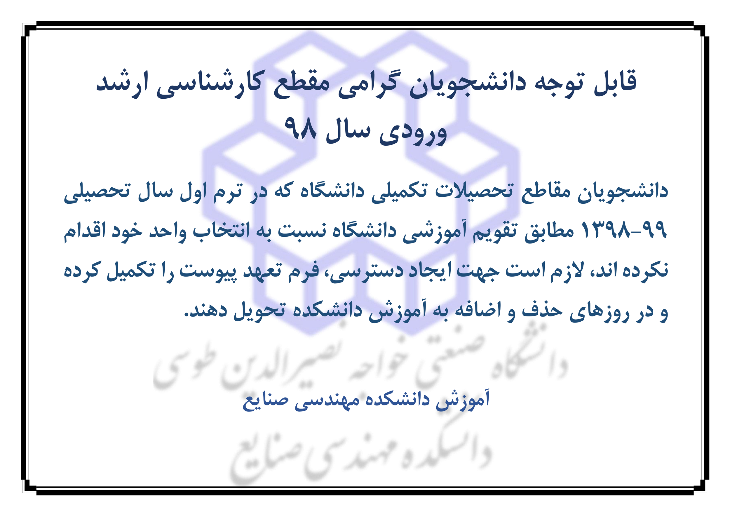 فرم تعهد دانشجويان مقاطع تحصيلات تكميلي - دانشکده مهندسی صنایع