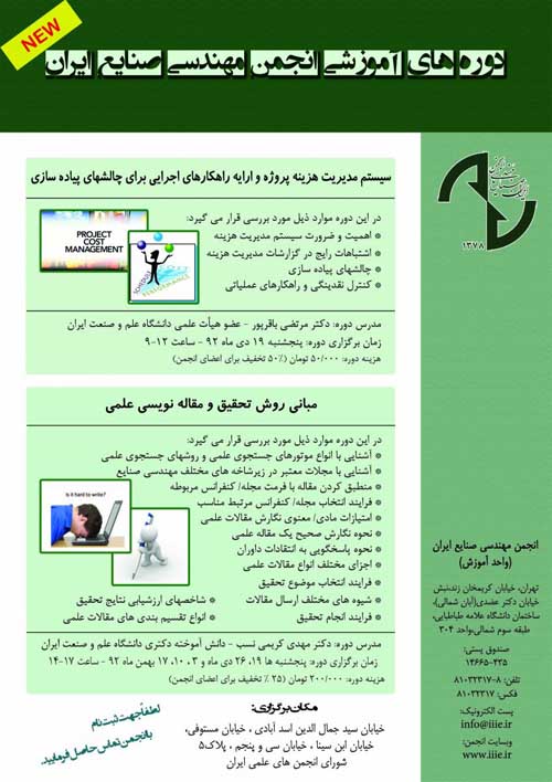 با توجه به درخواست برخي از علاقه مندان شركت در دوره آموزشي جامع مقاله نويسي علمي و روش تحقيق جهت تغيير تاريخ آغاز دوره به منظور جلوگيري از تداخل دوره با امتحانات دانشگاهي، اولين جلسه اين دوره به روز 19 دي ماه موكول شد. لذا در جلسه مورخ 17 بهمن ماه، در مورد تعيين تاريخ آخرين جلسه هماهنگي لازم به عمل خواهد آمد.