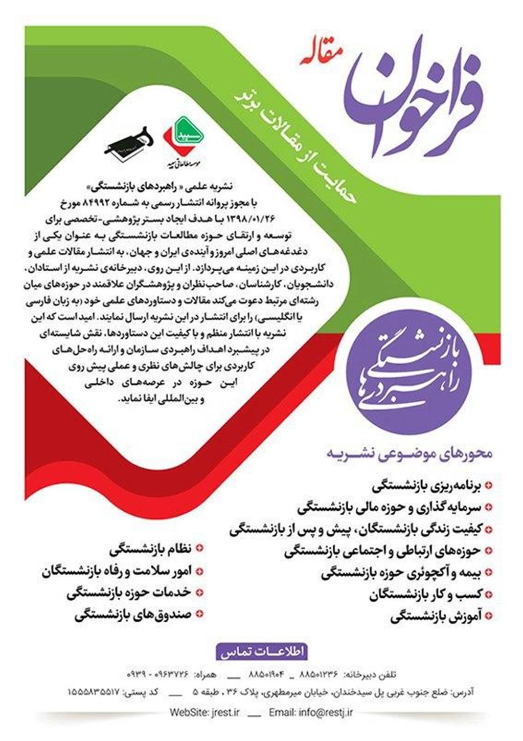 🔵 فراخوان ارسال مقاله در نشریه علمی "راهبردهای بازنشستگی"