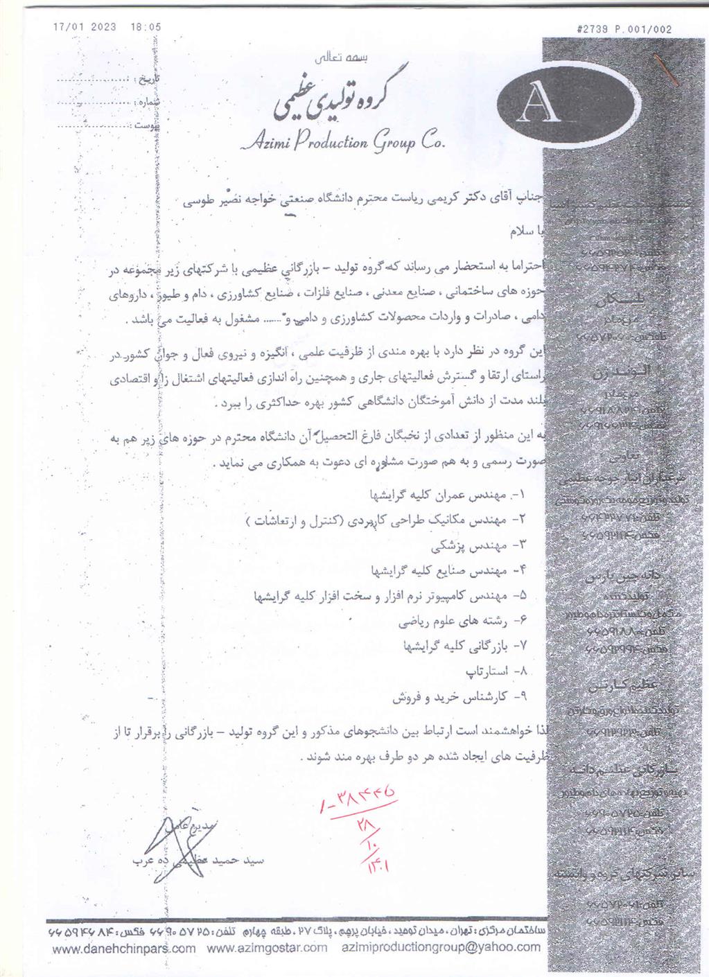 اطلاع رسانی گروه تولیدی عظیمی - دانشکده مهندسی صنایع