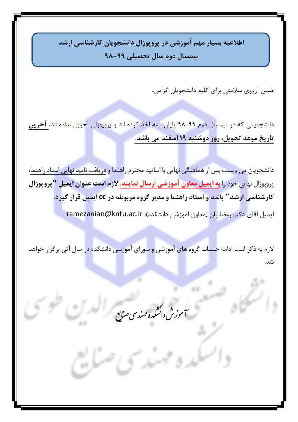 اطلاعیه شماره 4 - تحویل پروپوزالهای ارشد