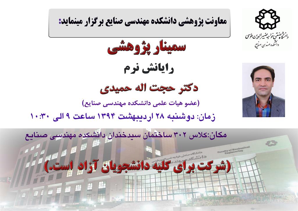 اطلاع رساني برگزاري سمينار پژوهشي با عنوان"رايانش نرم" - دانشکده مهندسی صنایع