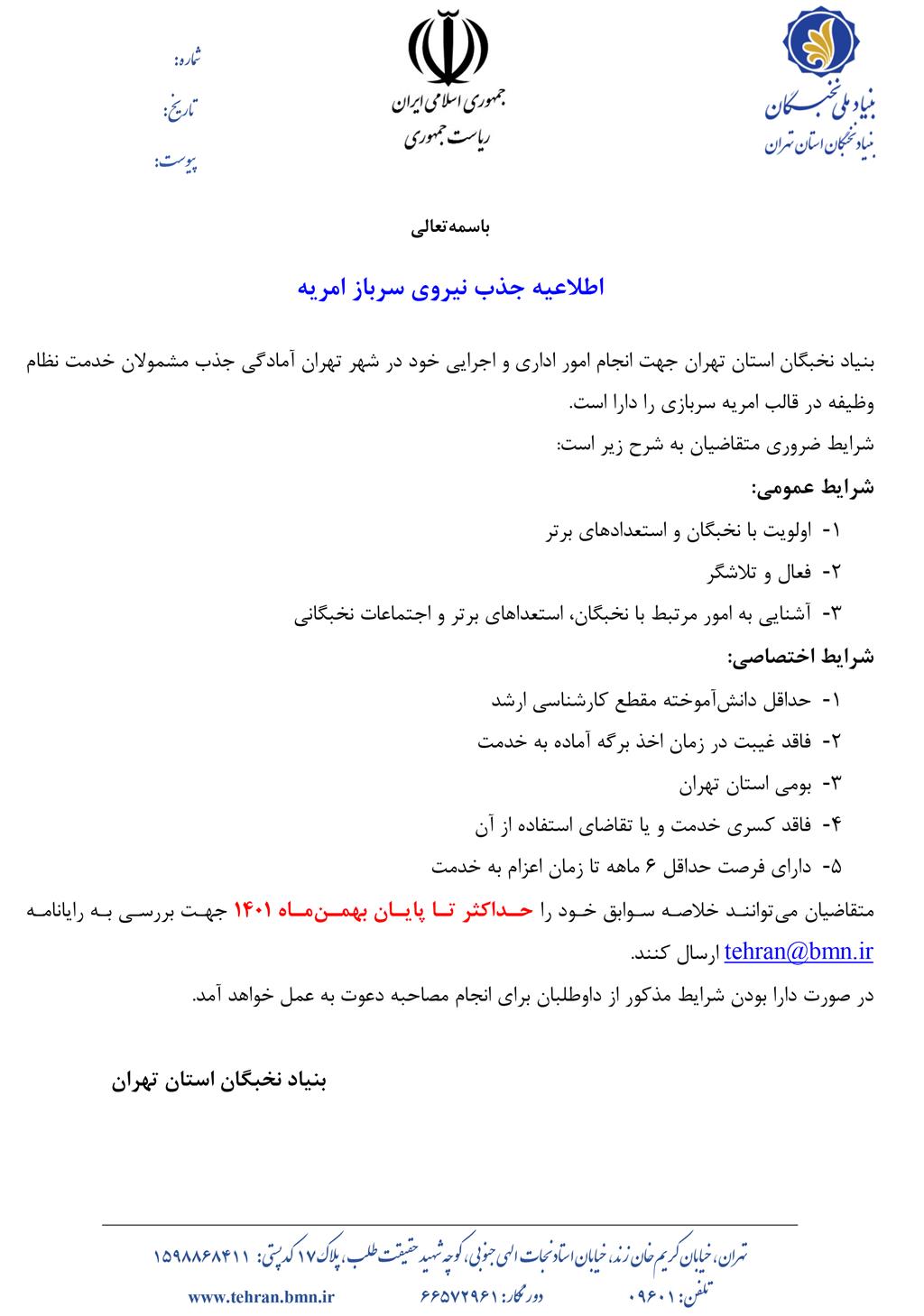 اطلاع رسانی امریه سربازی بنیاد ملی نخبگان