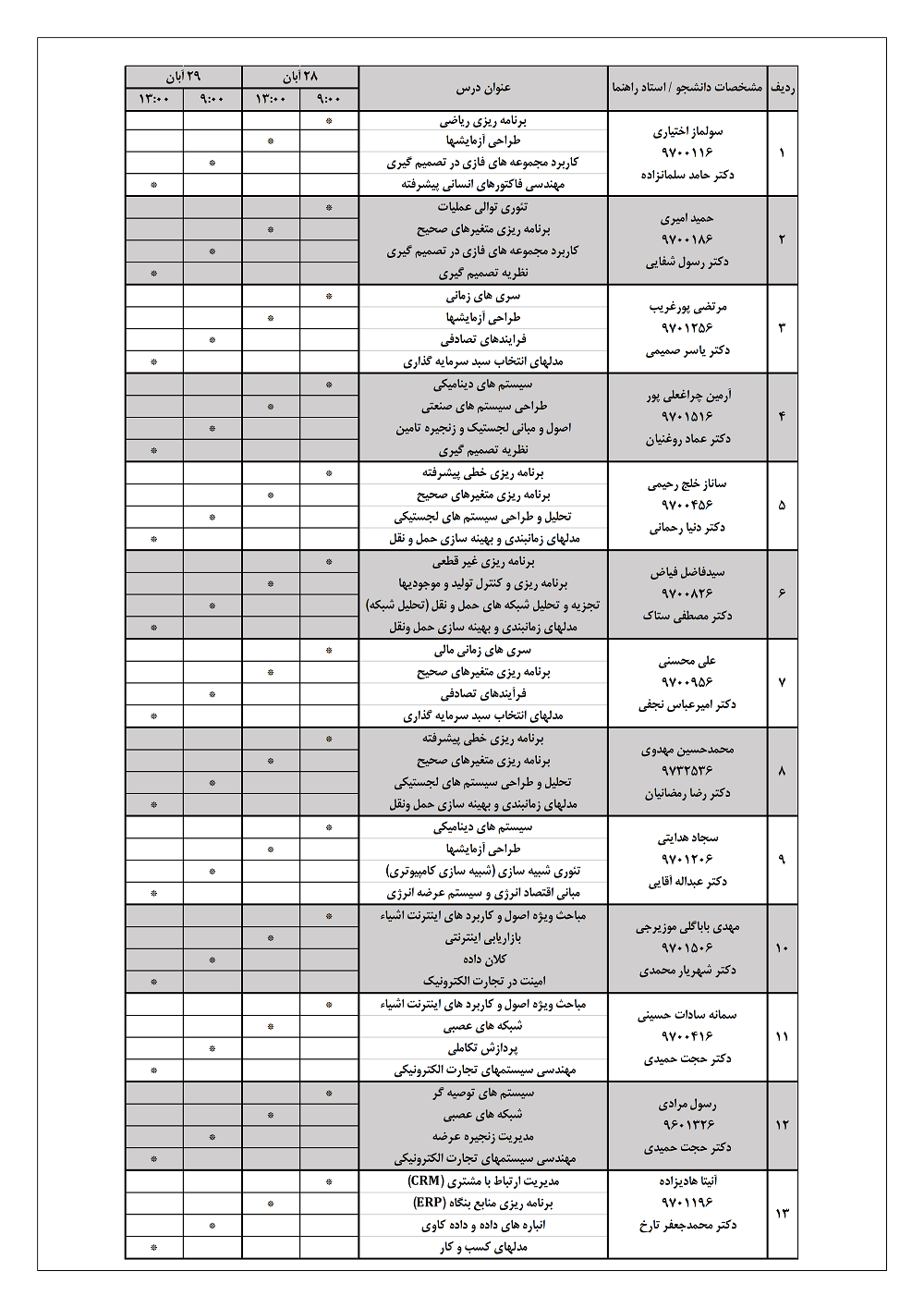 برنامه برگزاري آزمون جامع دانشجويان دكتري سال 98 - دانشکده مهندسی صنایع