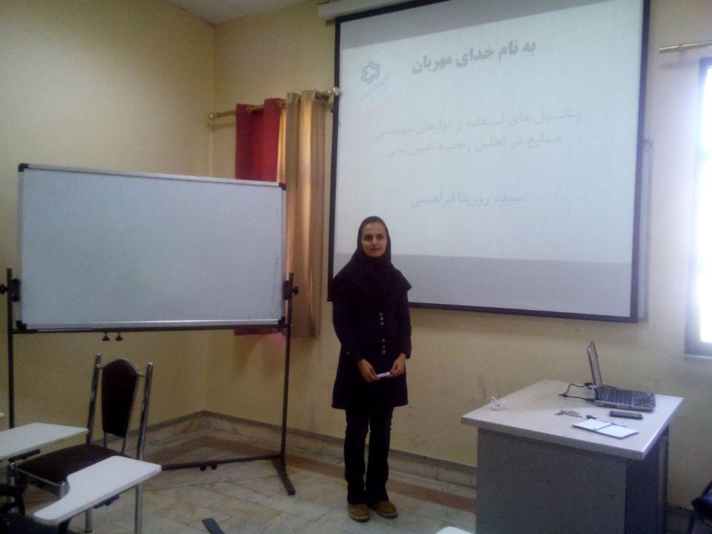 سمينار پژوهشي"پتانسيل هاي استفاده از ابزارهاي مهندسي صنايع در تحليل زنجيره تامين لبني" در روز يكشنبه مورخ 95/9/7 در سمعي بصري طبقه اول دانشكده مهندسي صنايع  دانشگاه خواجه نصيرالدين طوسي توسط سركار خانم رزيتا ابراهيمي به استاد راهنمايي جناب آقاي دكتر خوش الحان برگزار گرديد.
