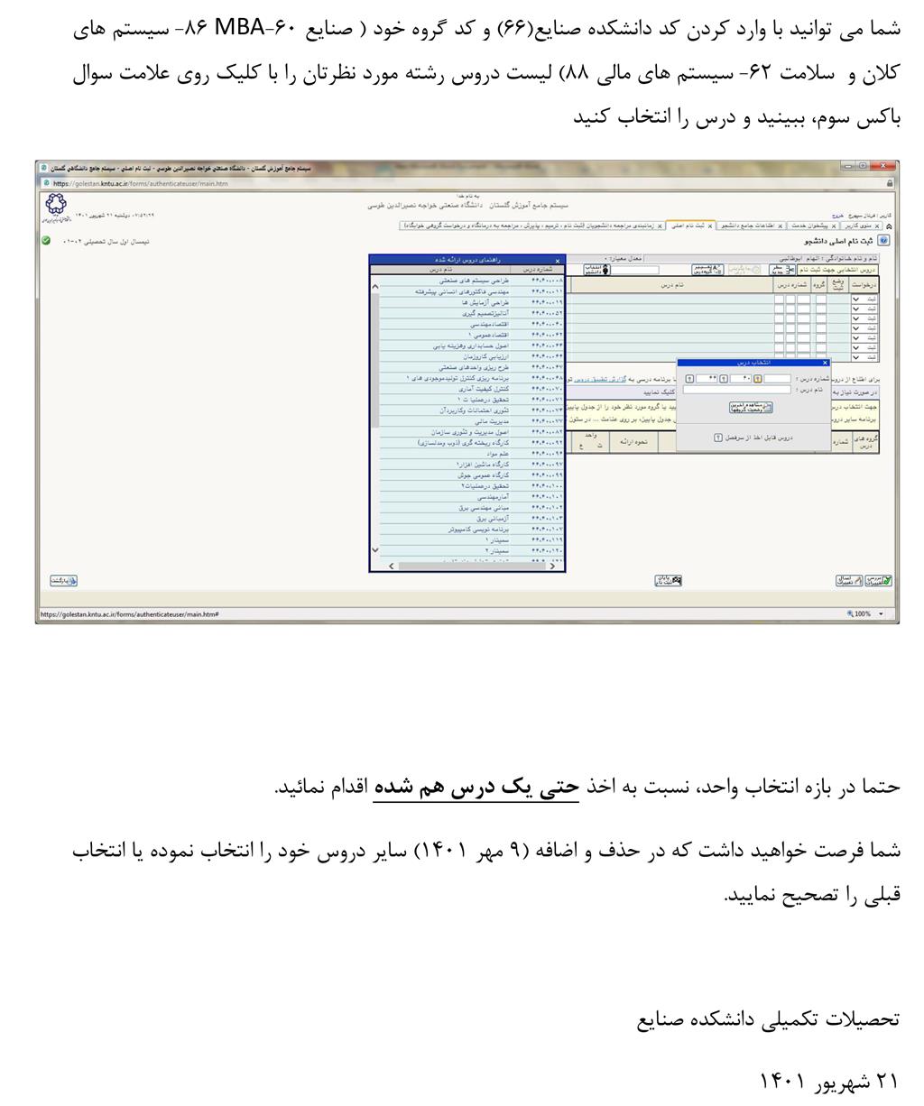 راهنمای انتخاب واحد دانشجویان - دانشکده مهندسی صنایع