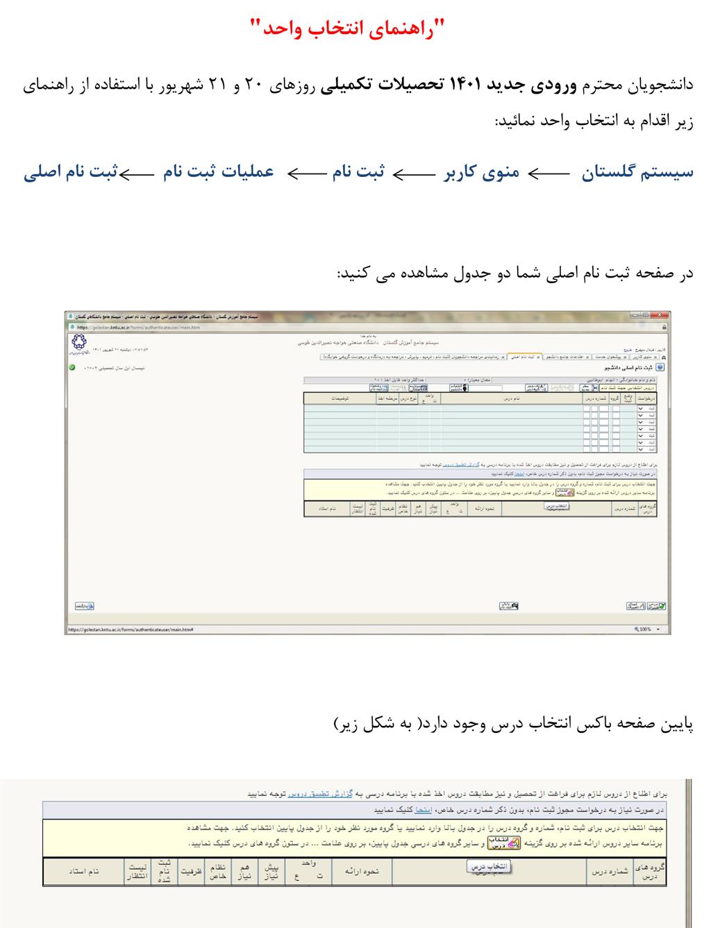 راهنمای انتخاب واحد دانشجویان