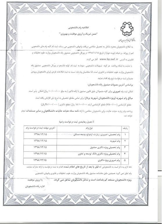 🔵 اطلاعیه مهم اداره رفاه دانشجویان در خصوص وام دانشجویی - دانشکده مهندسی صنایع