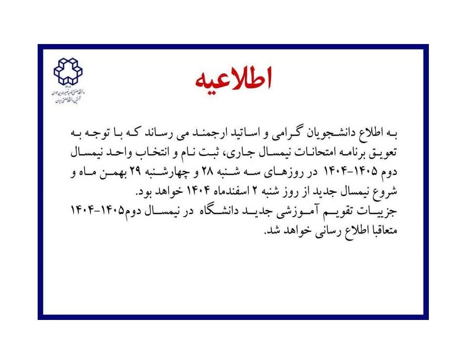 اطلاعیه تاریخ ثبت نام و انتخاب واحد نیم سال دوم ۱۴۰۵-۱۴۰۴